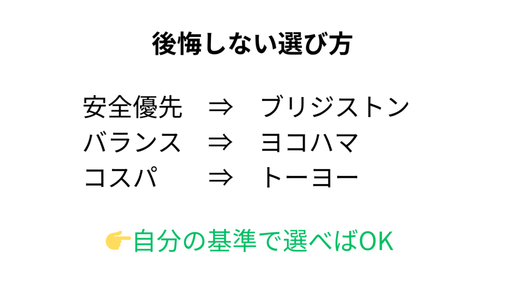 - ブリヂストン(安心重視)