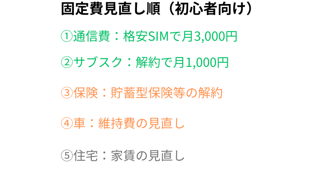 固定費見直しのおすすめ順
