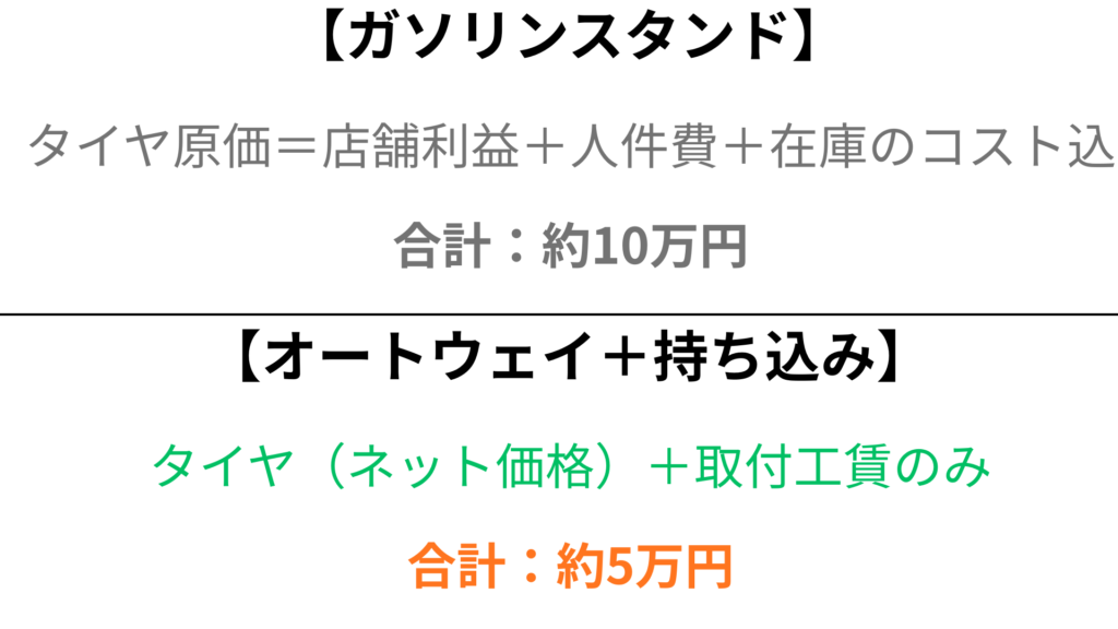 - 店舗はタイヤに利益を乗せている