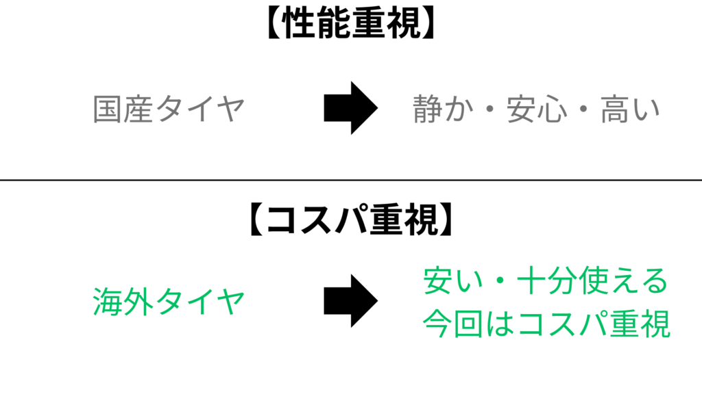- コスパ重視 → 海外タイヤ
